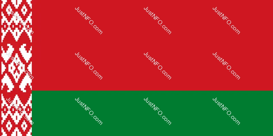 The Belarusian flag is a red-green bicolour with a distinctive red-on-white traditional pattern at the hoist.