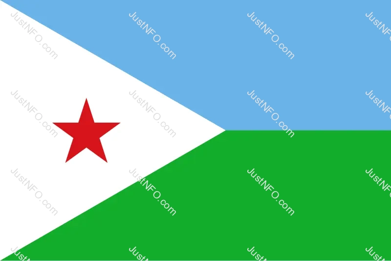The Flag of Djibouti featuring blue and green horizontal bands with a white triangle and a red star