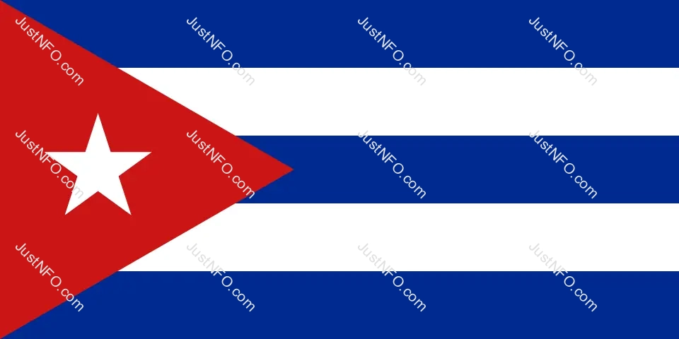 Design and Colors : The Cuban flag consists of five horizontal stripes (three blue and two white) and a red equilateral triangle on the hoist side, containing a white star in the center.