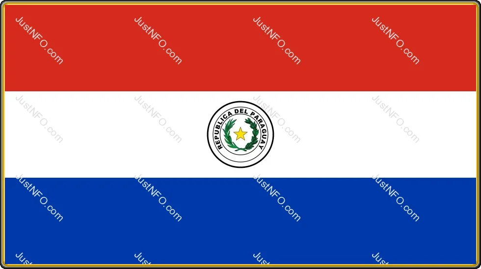 The national flag of Paraguay with red, white, and blue stripes and the front-side national emblem