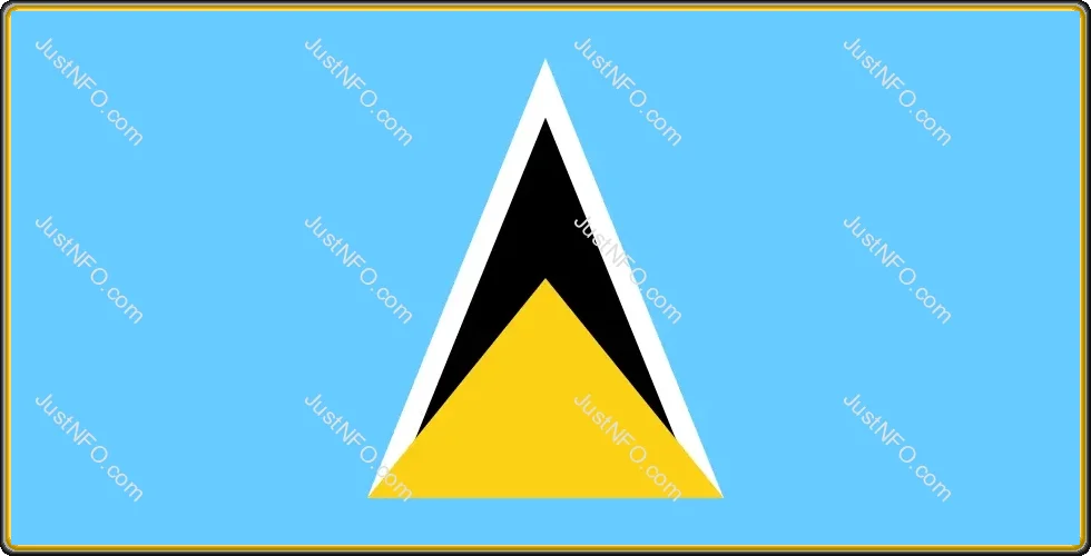 The official flag of Saint Lucia featuring a light blue field with geometric triangles— a golden triangle in front of a black-and-white triangle—representing the iconic Pitons volcanic peaks and the nation’s maritime heritage.