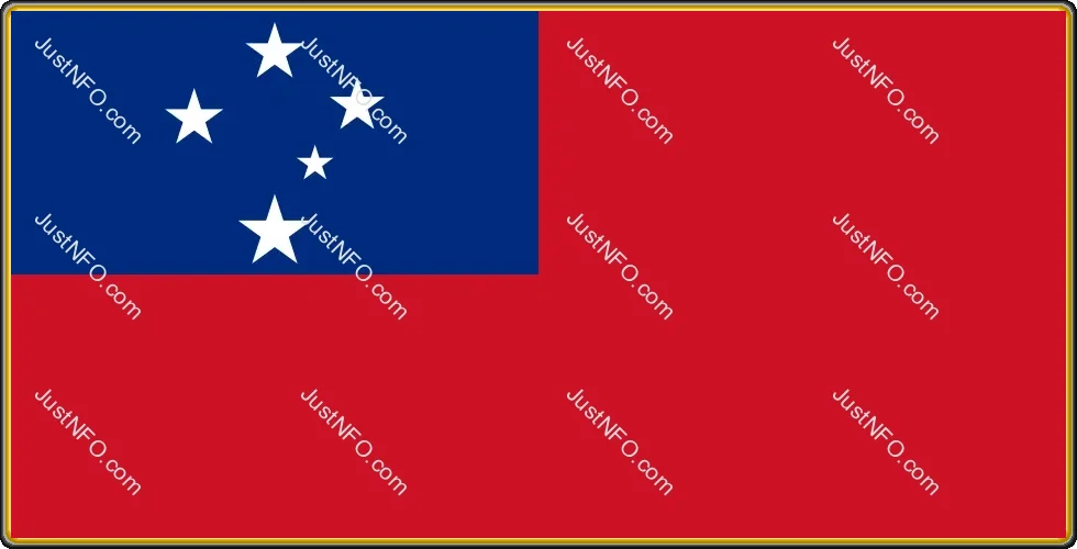 The official flag of Samoa featuring a red field with a blue rectangle in the upper left corner containing five white stars representing the Southern Cross constellation. The flag symbolizes the nationโ€™s identity and cultural heritage.