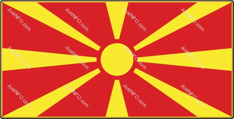 The North Macedonian flag is simple yet striking: it features a yellow sun with eight rays extending to the edges of a red field.