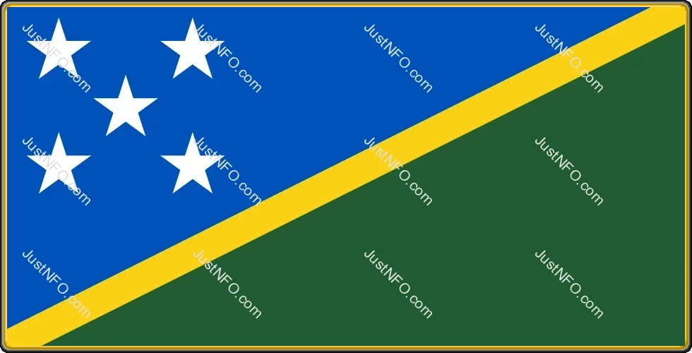 The Solomon Islands flag symbolizes a population living across tropical islands with diverse ethnic groups, rich traditions, fishing culture, and strong community ties, supported by agriculture and marine activities.