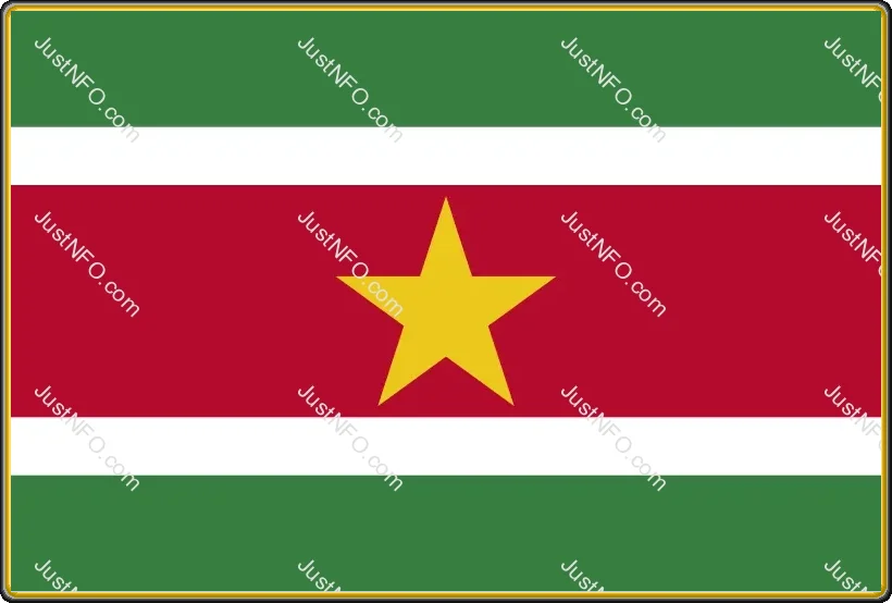The Surinamese flag symbolizes an ethnically diverse society including Indian, Afro-Surinamese, Javanese, Chinese, and Dutch communities living harmoniously within a tropical nation rich in rainforests and natural landscapes.